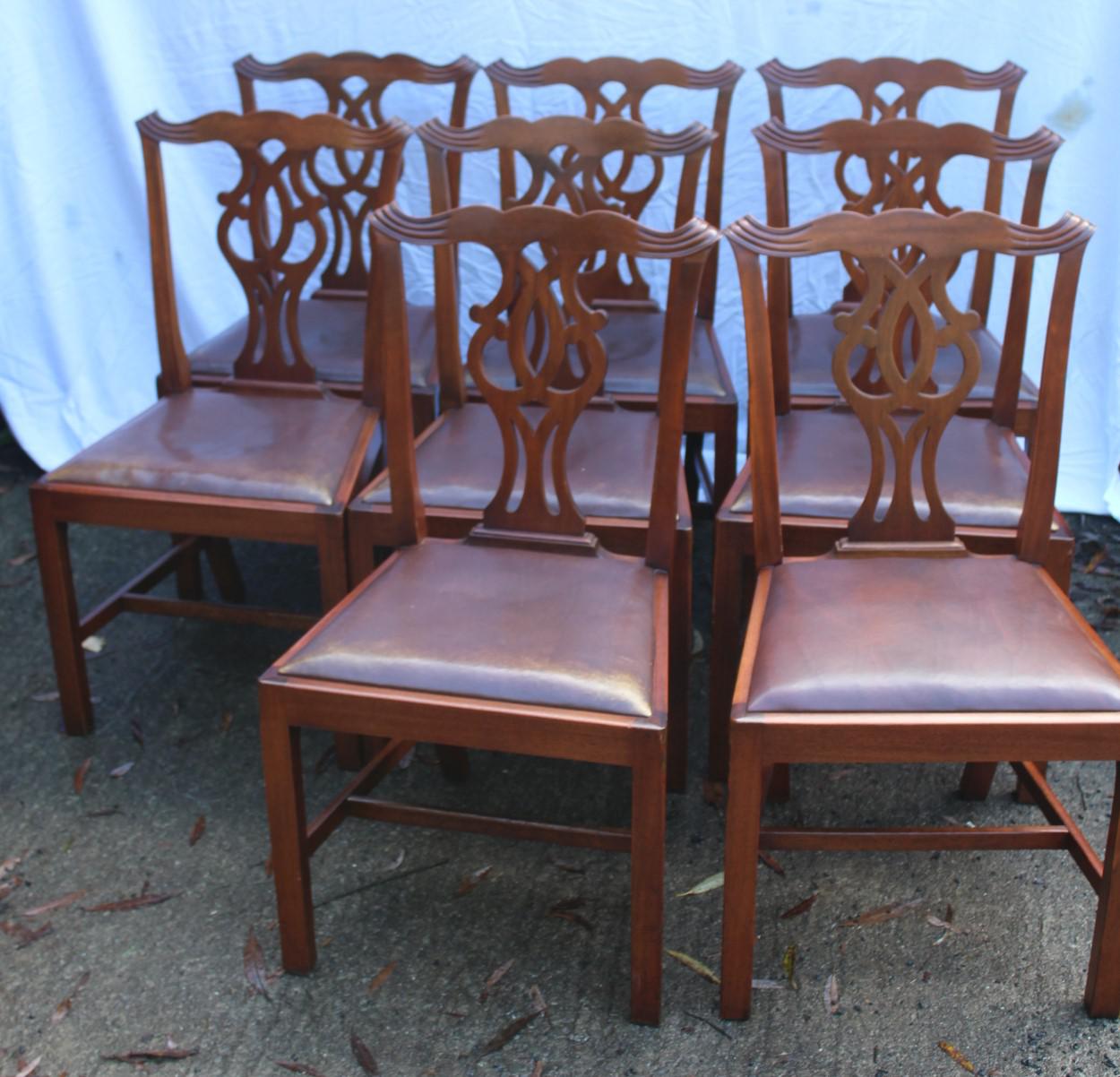 1900's Mahogany Set of 8 Georgian style Dining Chairs with Pop out Leather Seats