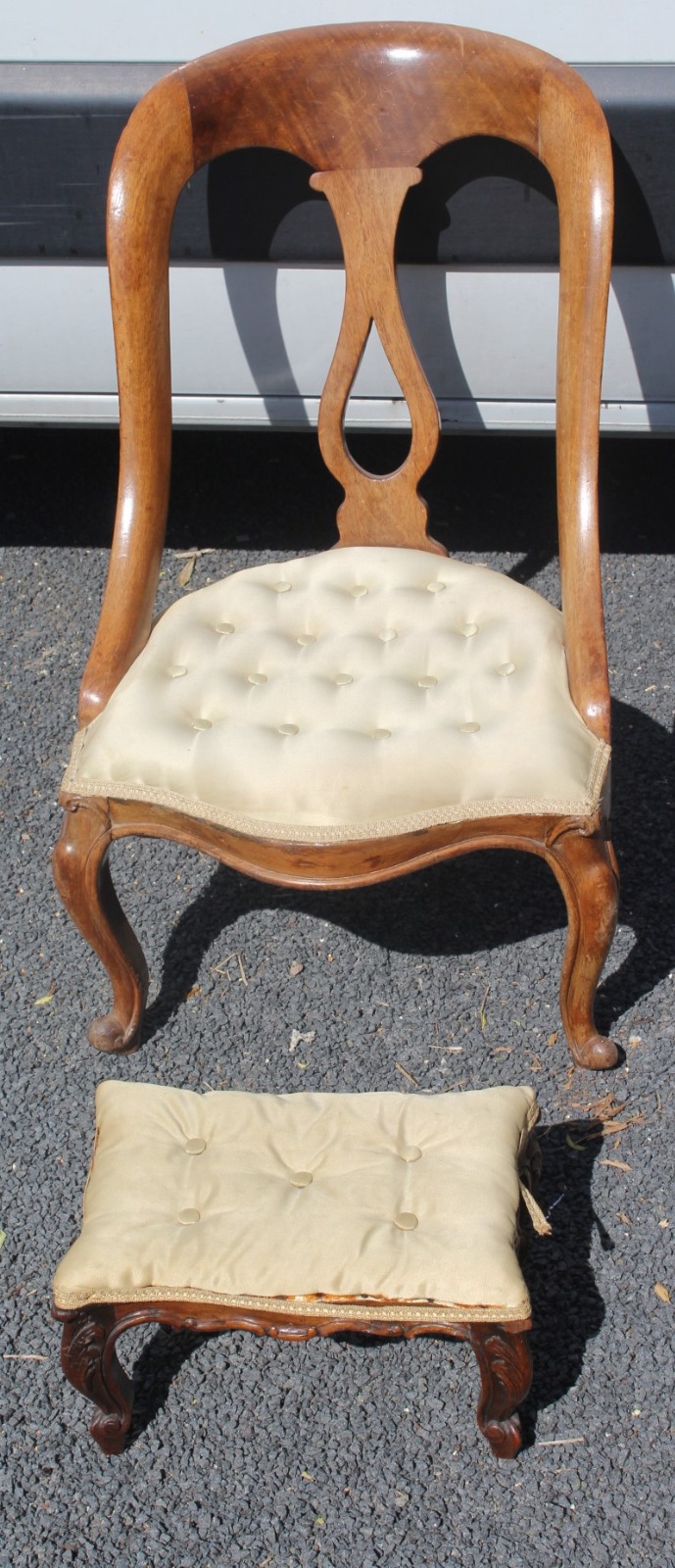 1900s Mahogany Upholstered Nursing Chair with Small Stool