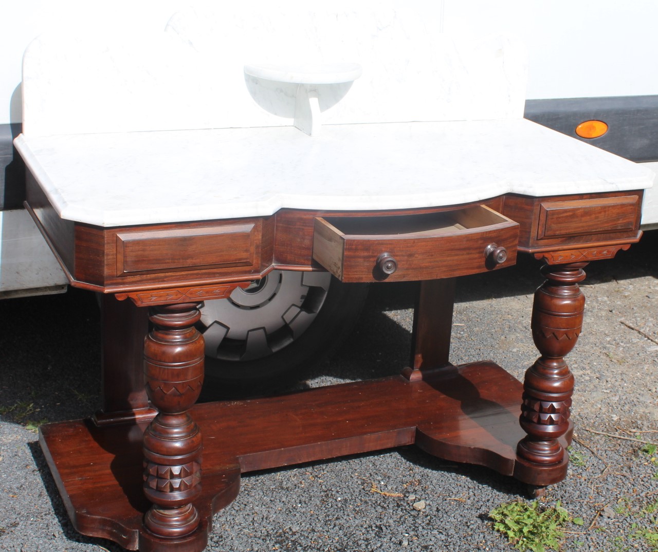 1900s Mahogany Washstand with One Drawer & White Marble Top