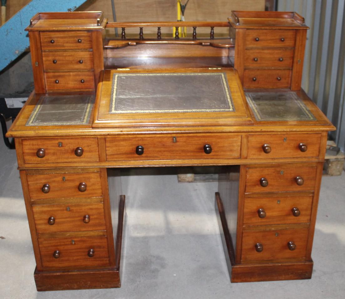 1900s Mahogany Wootton Pedestal Desk with Green Leather Inset