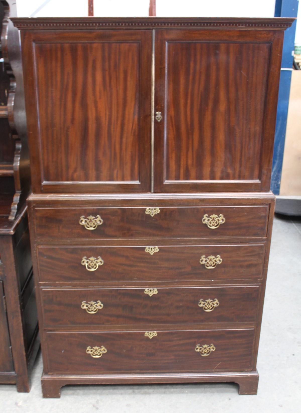 1900's Maple & Co Mahogany Chest Drawers with Linen Cupboard at Top