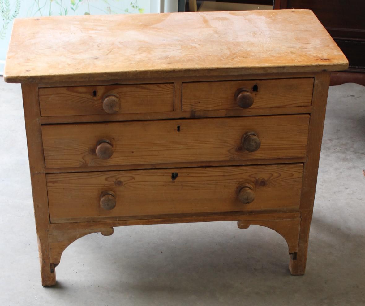1900's Neat Small Rustic Pine Chest Drawers 2 over 2.