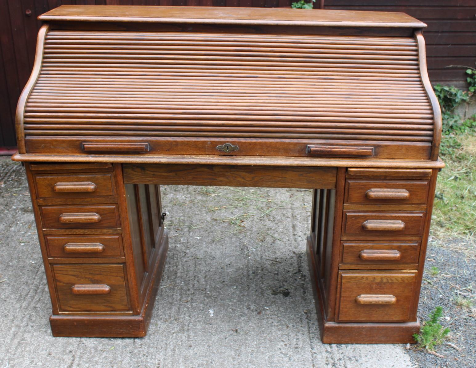 1900's Oak Roll Top Desk Well Fitted