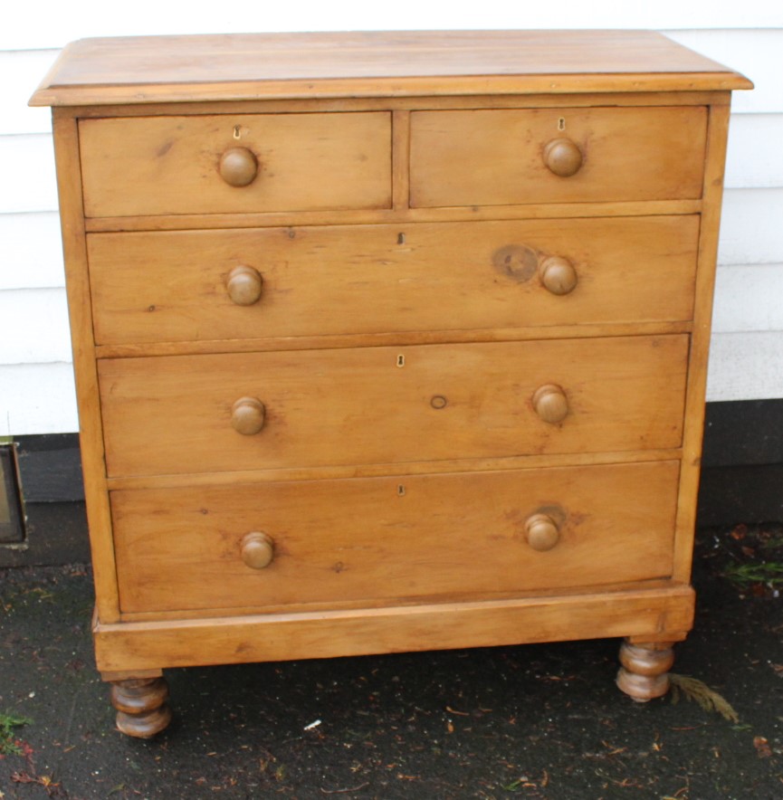 1900s Quality Antique Pine Country Chest of Drawers 2 Over 3 Drawers