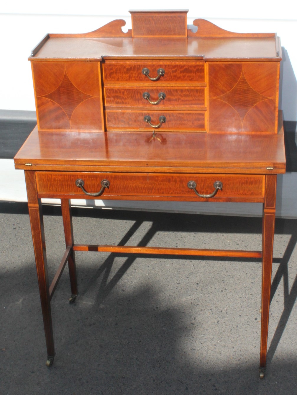 1900s Quality Mahogany Small Desk Well Fitted with Red Leather