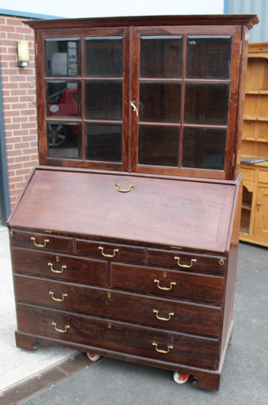 1900's Rosewood Colonial Bureau Bookcase With Well Fitted Interior