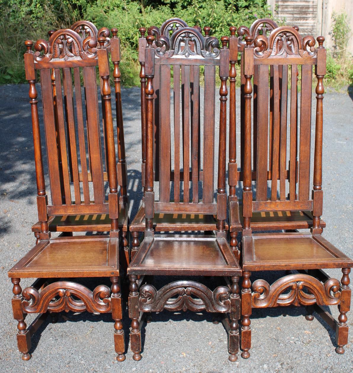 1900's Set 6 Carved Highback Oak Dining Chairs -carolean Style