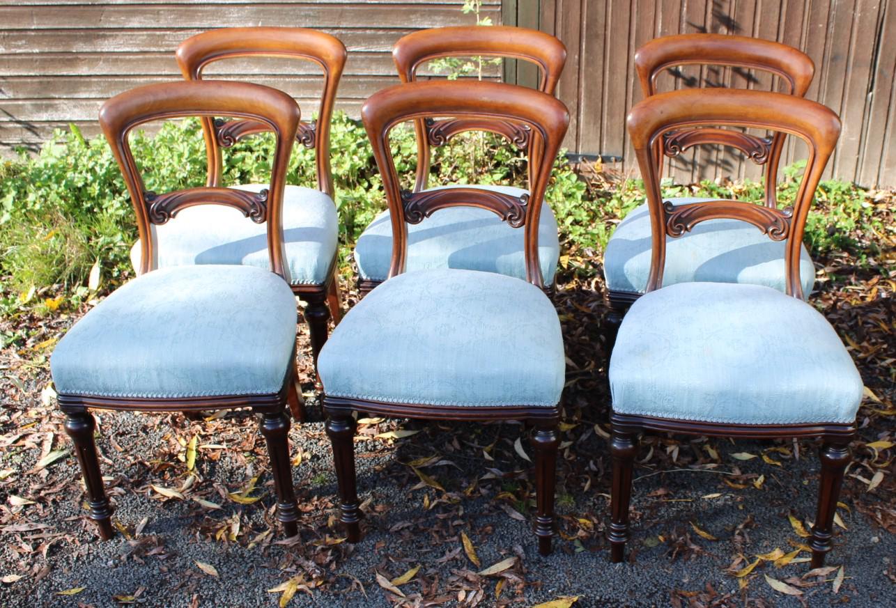 1900s Set 6 Mahogany Hoop Back Dining Chairs in Blue