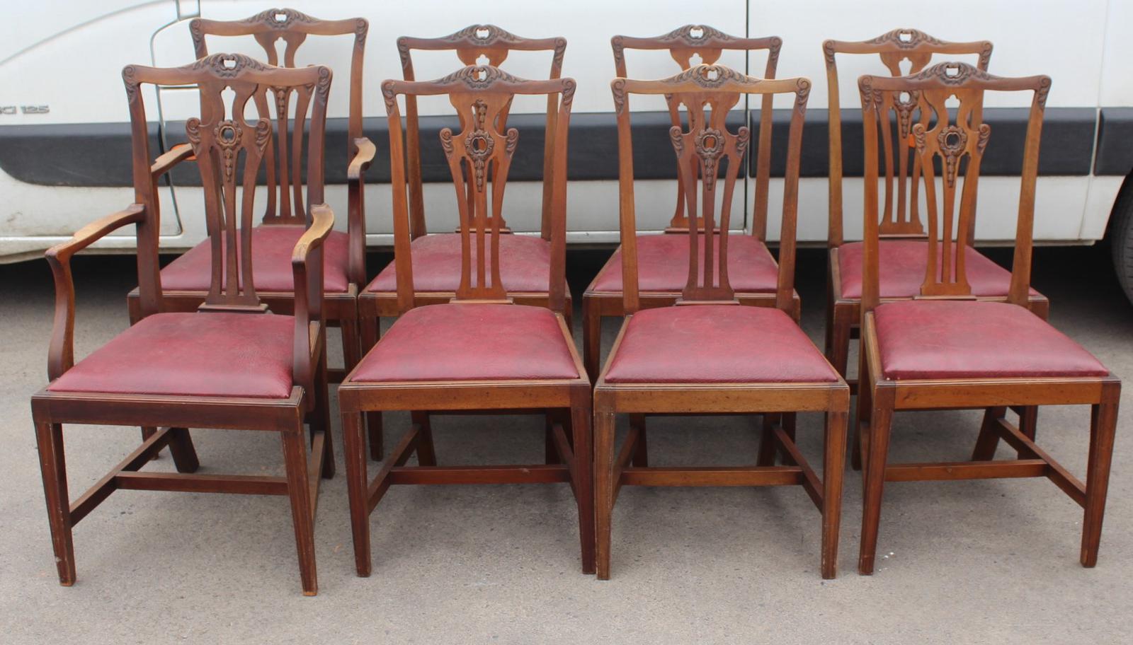1900's Set 8 Mahogany Georgian Style Chairs with Pop Out Seats 6+2 Carvers