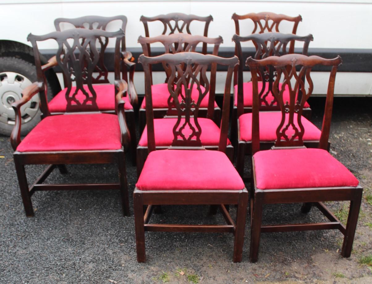 1900s -Set 8 Walnut Georgian style Dining Chairs with Pop out Seats 6+2