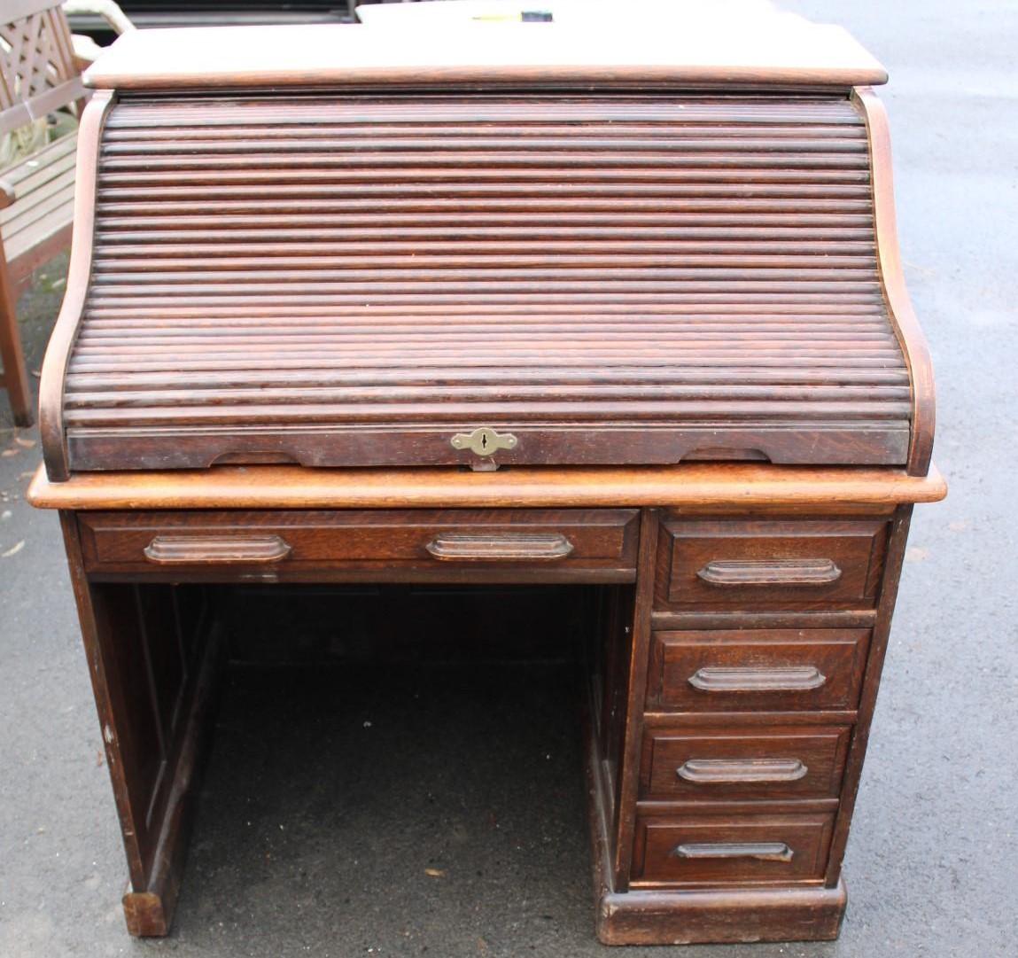1900s Single Pedestal Oak Stype Rolltop Desk