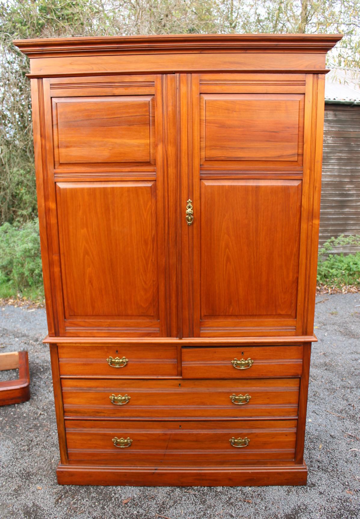 1900's Solid Walnut Linen Press with Slides