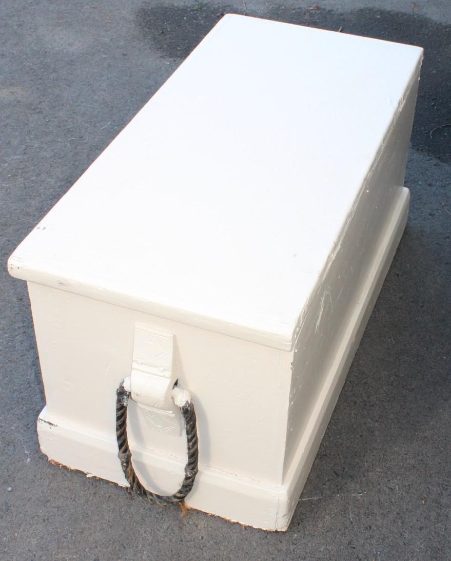 1900's White Painted Pine Ships Trunk with Candle Box inside.