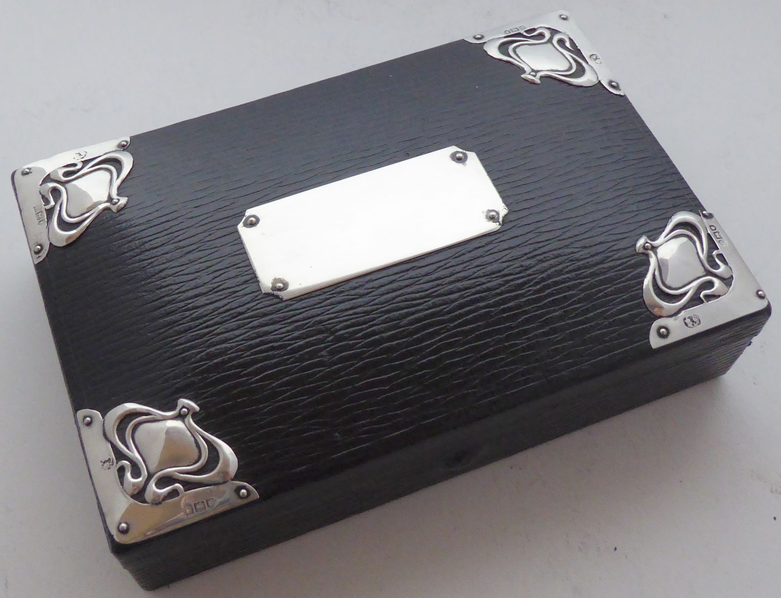 1906 Art Nouveau Hallmarked Solid Silver and Leather Box Jewellery Card
