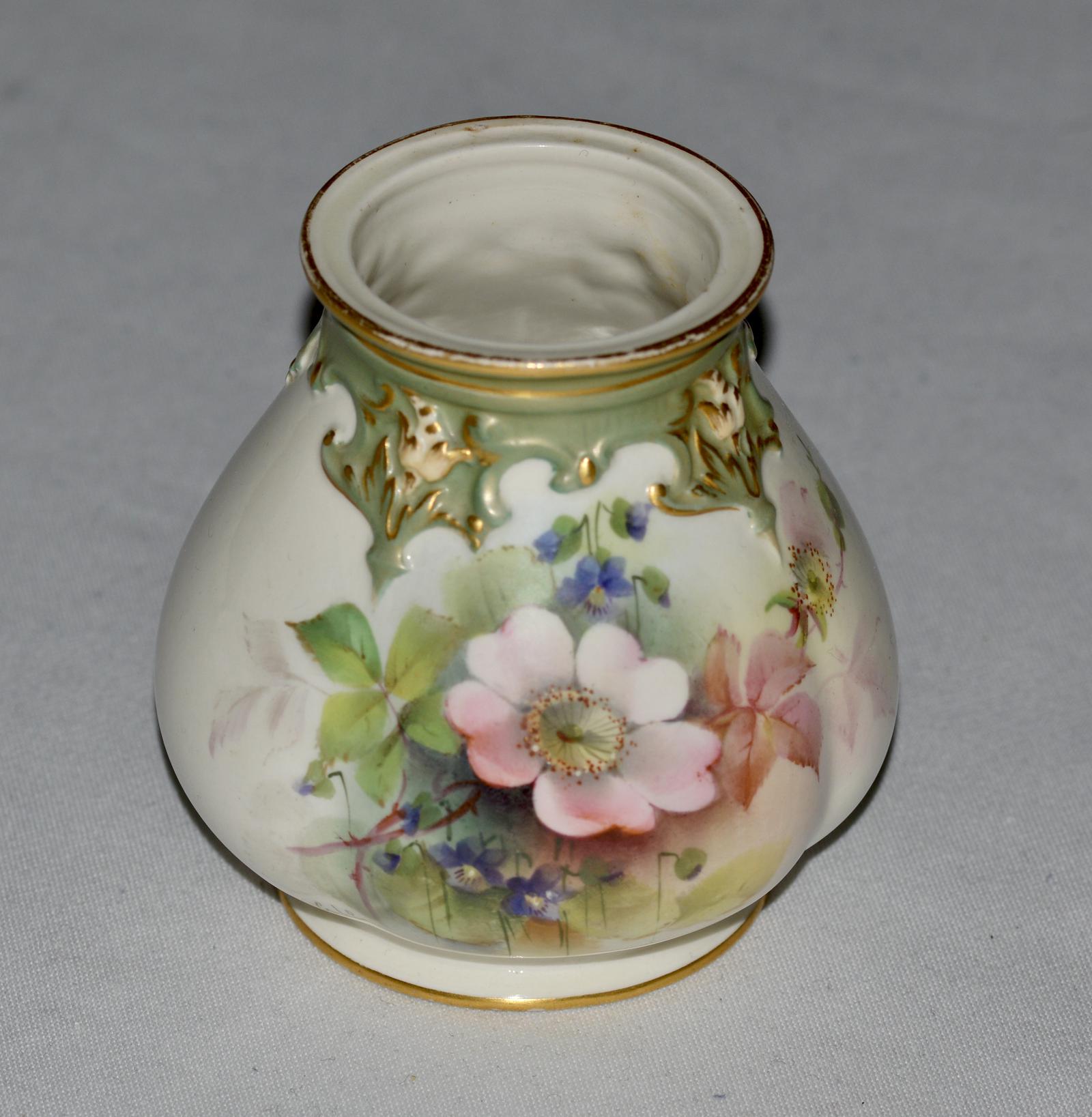 1908 - Royal Worcester - Hand Painted Ovoid Shaped Small Vase - Signed Cole (1 of 9)