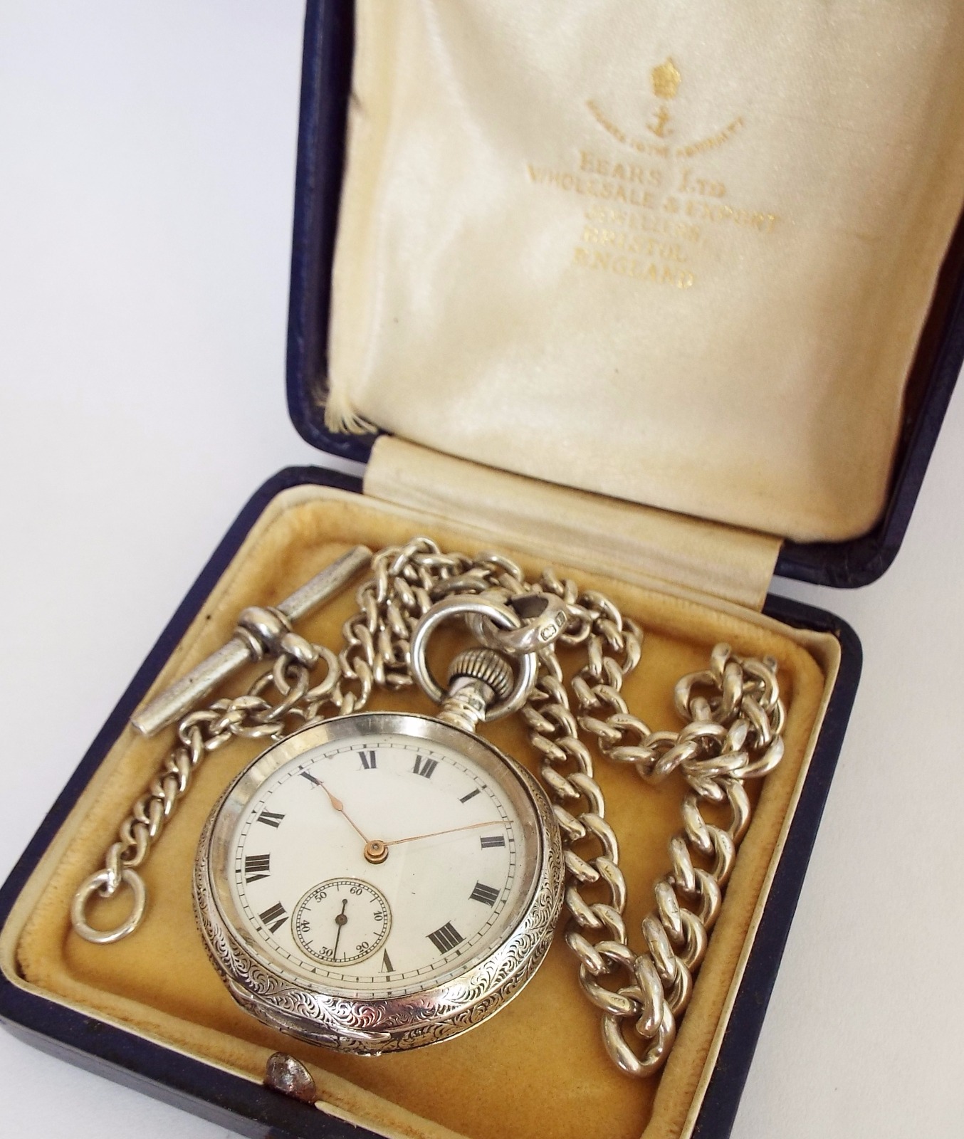 1908 Waltham Miniature Silver Pocket Watch & Chain