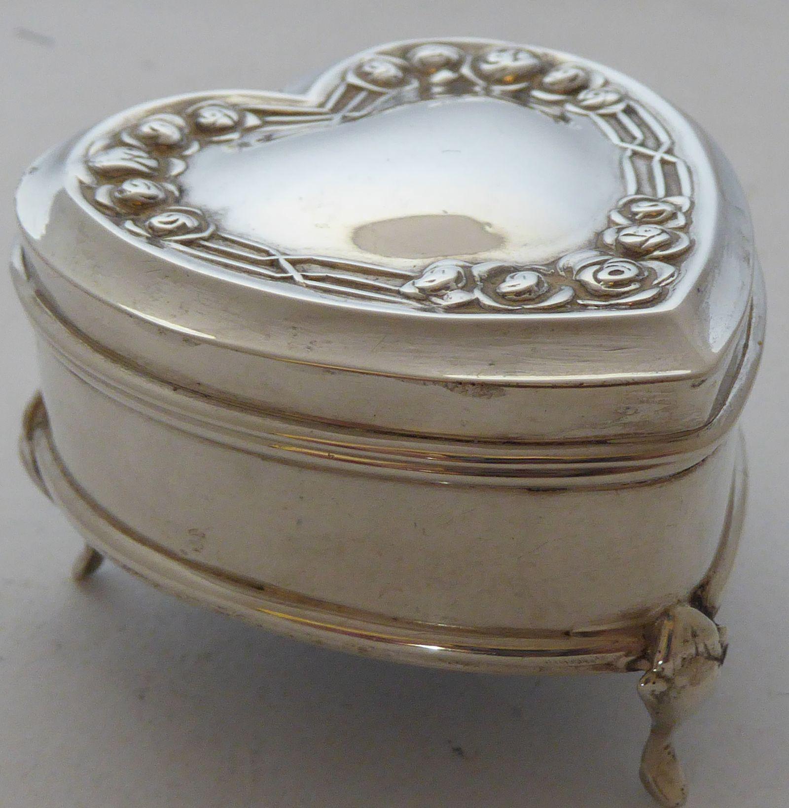 1909 Hallmarked Silver Love Heart Pill Earring Jewellery Box Arts & Crafts