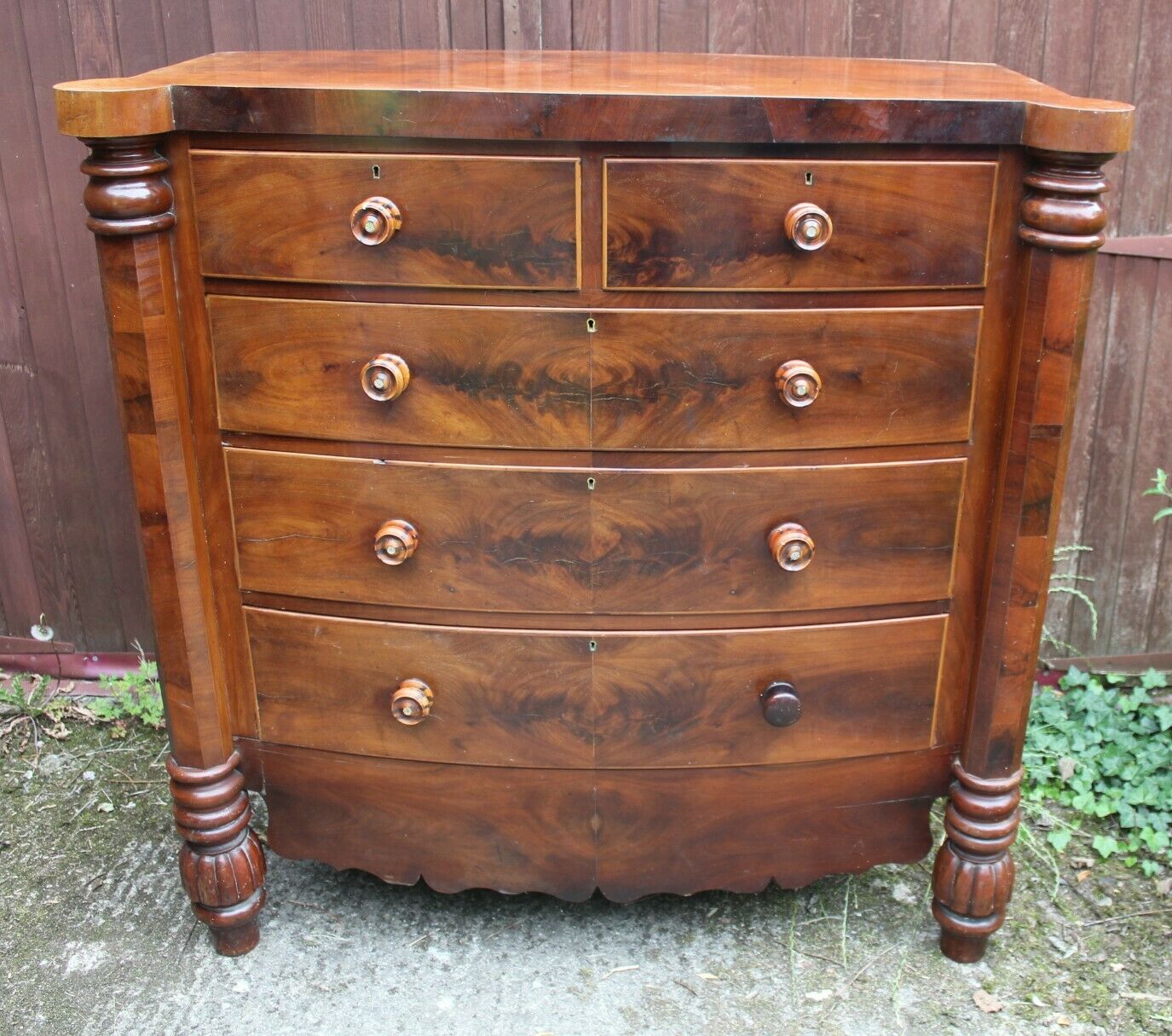 1910 Large Mahogany Bow Front Scotch Chest Drawers