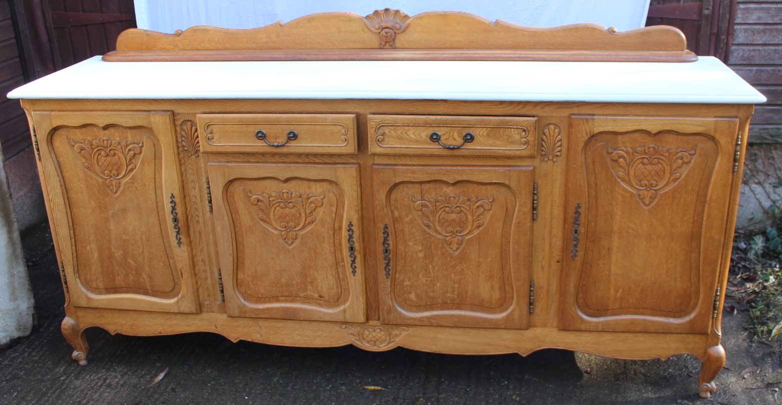 1910 Oak French 4 Door Sideboard with Painted Top and Keys