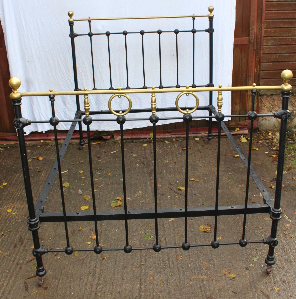 1910s Brass & Iron Bed Painted Black - Check Sizes
