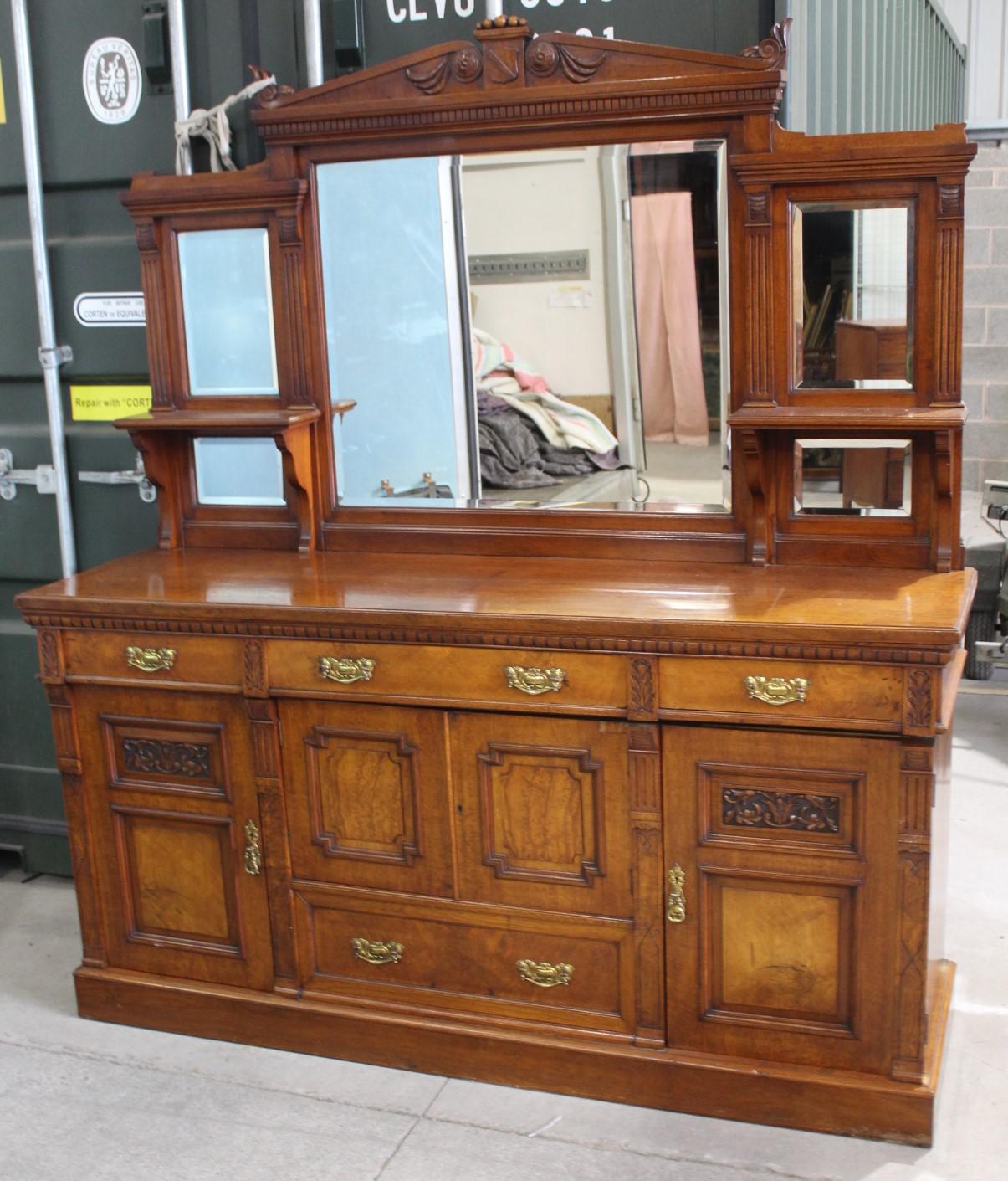 1910's Good Large Carved Oak Sideboard with Mirror Back