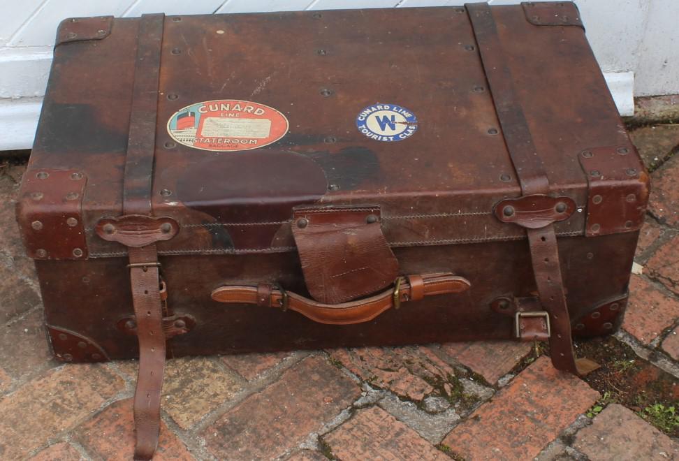 1910's Great Leather Storage Trunk with Cunard White Star Label