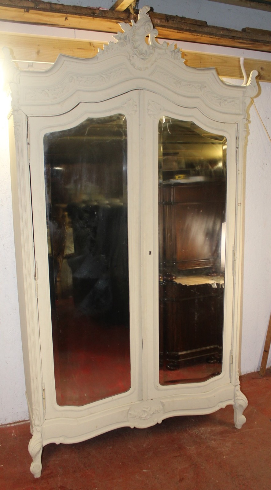 1910s Large Carved White Painted 2 Door Louis XV Style Mirrored Armoire
