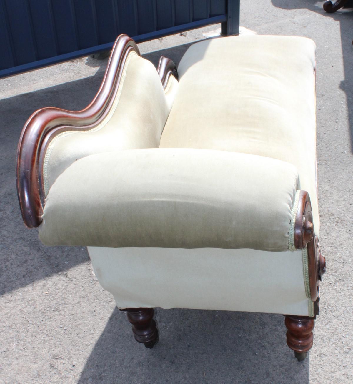 1910's Mahogany Carved Framed Chaise in Green. Faded