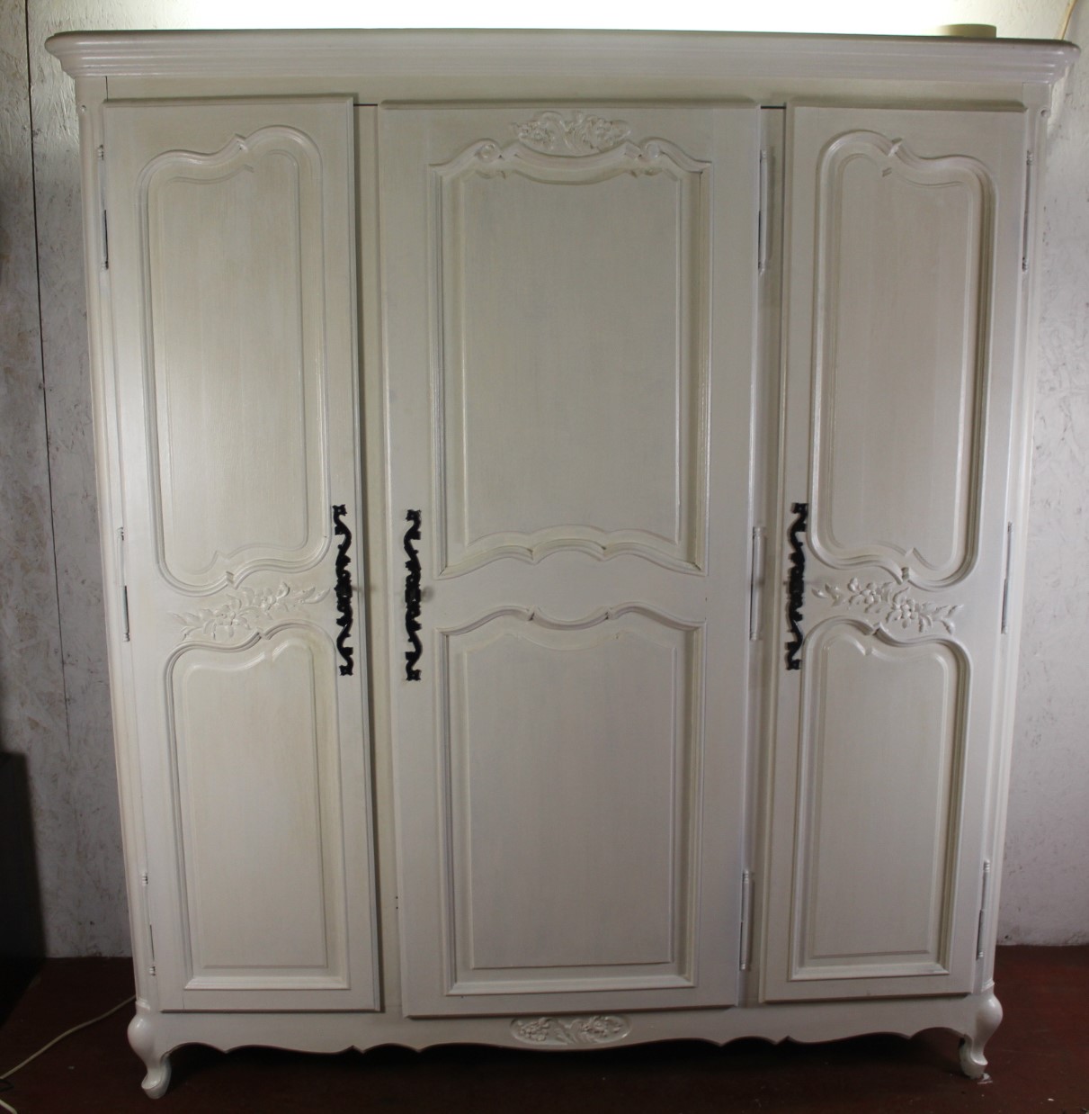1910s Oak 3 Door Louis XV Style Wardrobe Painted in Farrow & Ball White