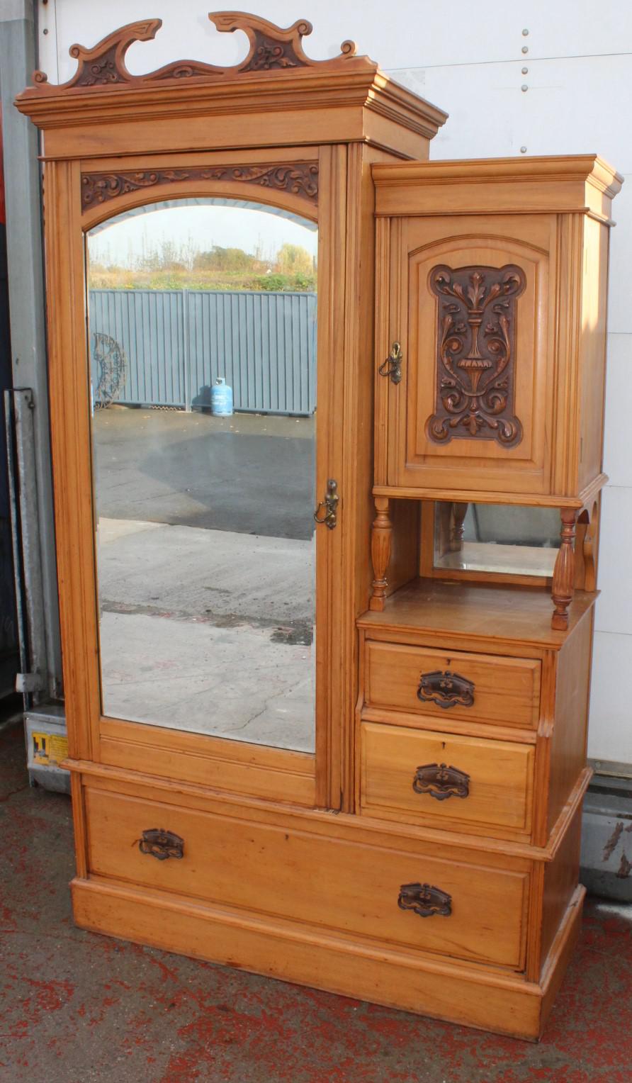 1910s Over Carved Satin Walnut Mirrored Combination Wardrobe