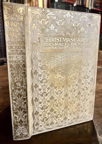 Christmas Carol in Prose. Being a Ghost Story of Christmas by Charles Dickens Published by J. M. Dent & Sons, London 1911 Illustrations by C. E. Brock Hardback bound in the original publishers deluxe full vellum binding with gilt decorated front board and spine. Complete with coloured frontis illustration + seven further full page colour plates, several black and white illustrations among text. The book measures approx 7" x 5 inches