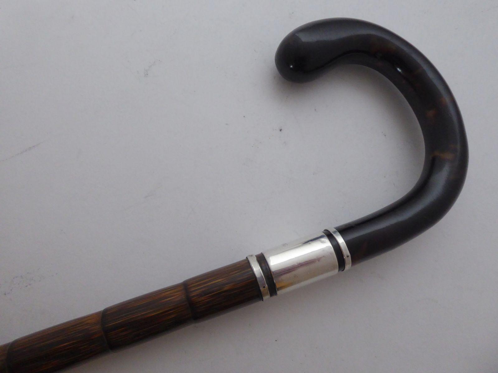1912 Tortoise Shell Partridge Wood Hallmarked Solid Silver Walking Stick Cane