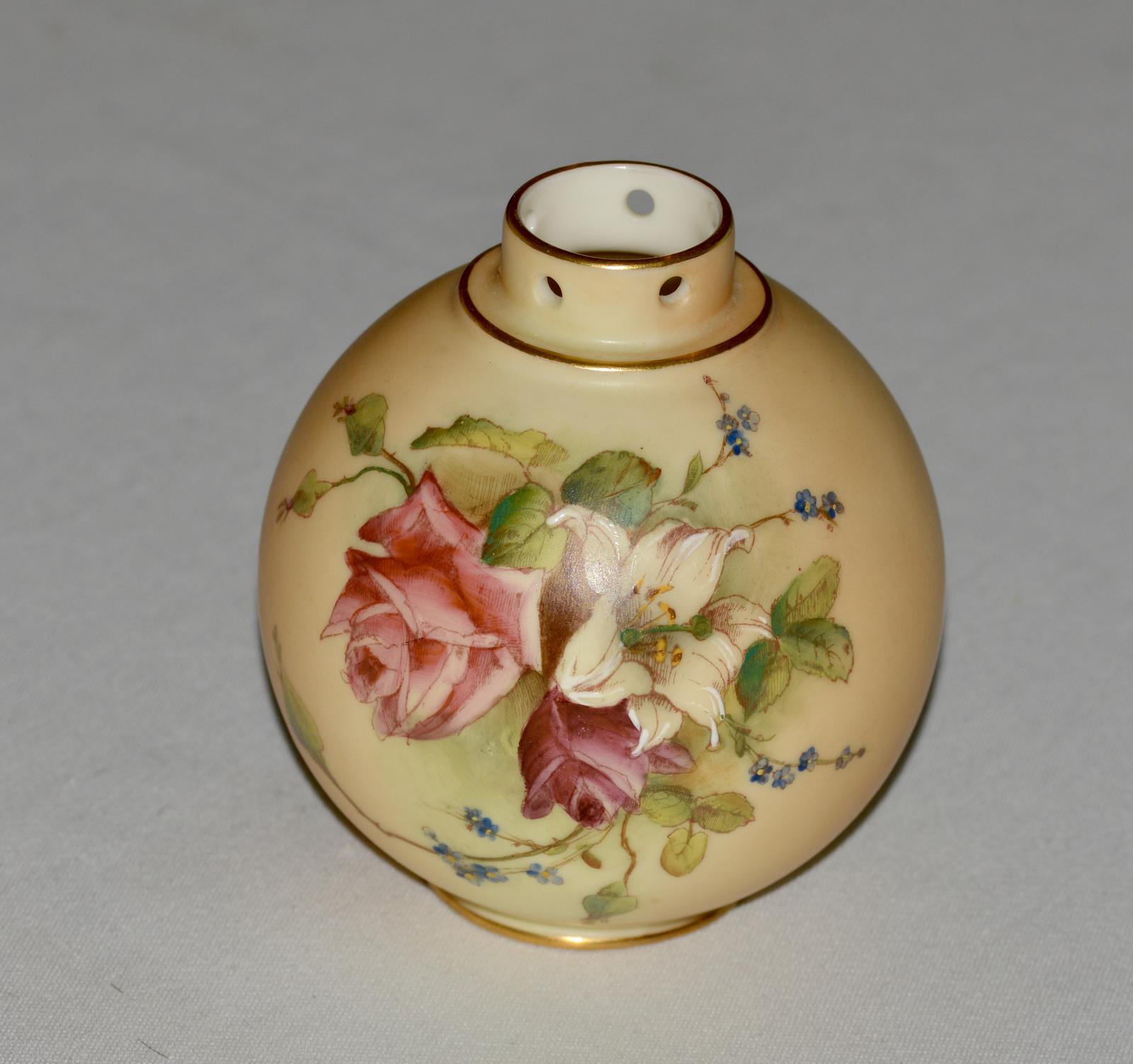 1914 Royal Worcester Globular Shaped Blush Ivory Vase ' Roses '