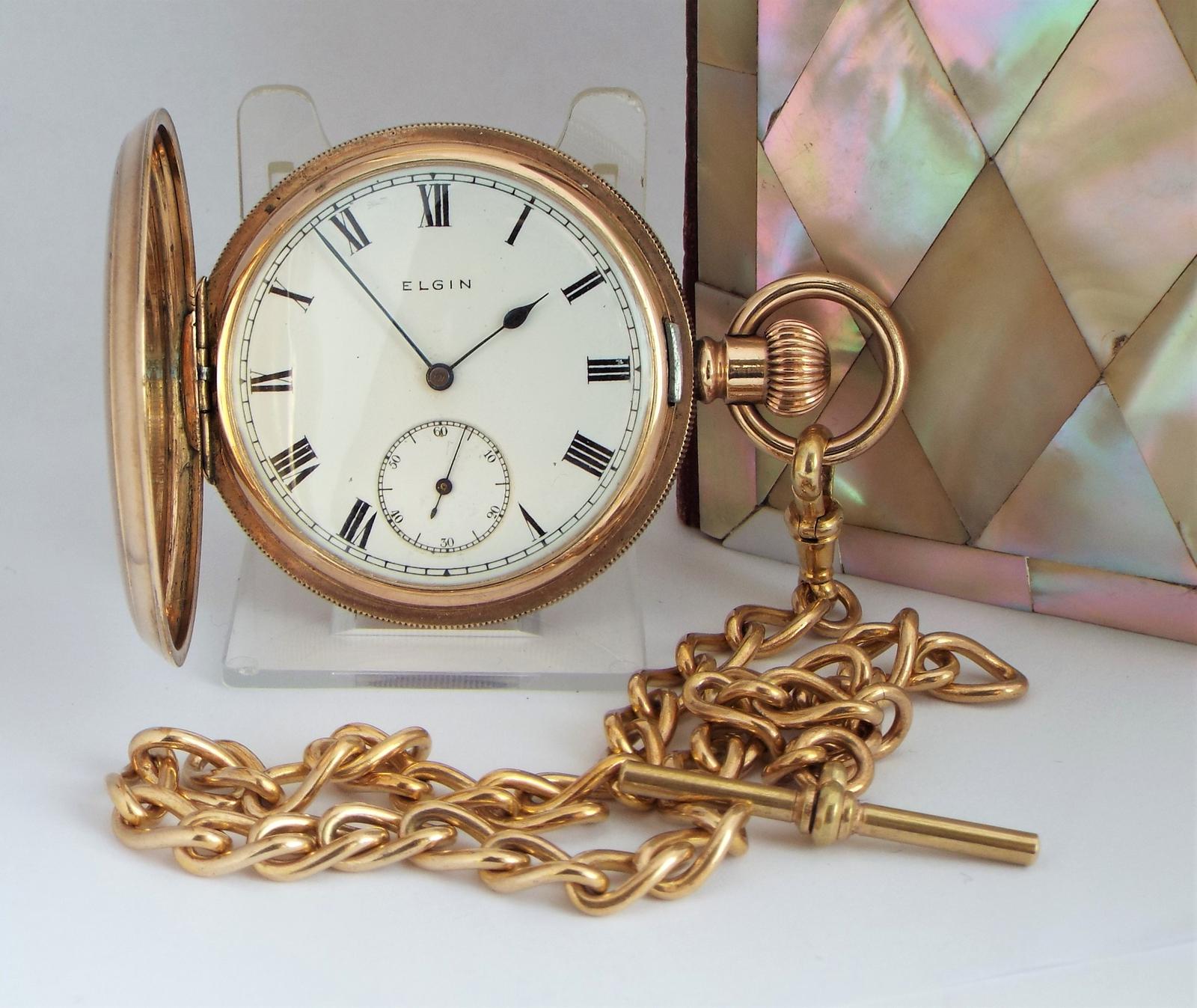 1915 Elgin Full Hunter Pocket Watch & Chain