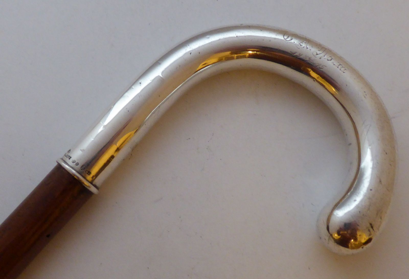 1915 Swedish Walking Stick Cane Hallmarked Solid Silver Chestnut Wood Shaft