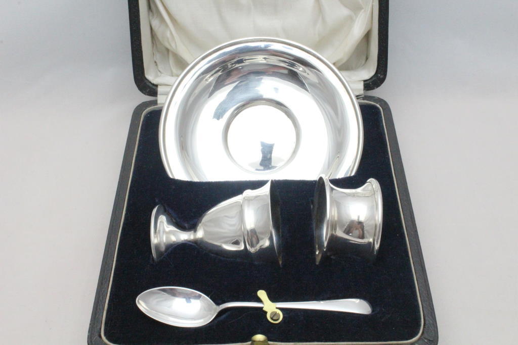 1916 Antique Cased Solid Silver 4 Piece Breakfast Set Egg Cup Gift
