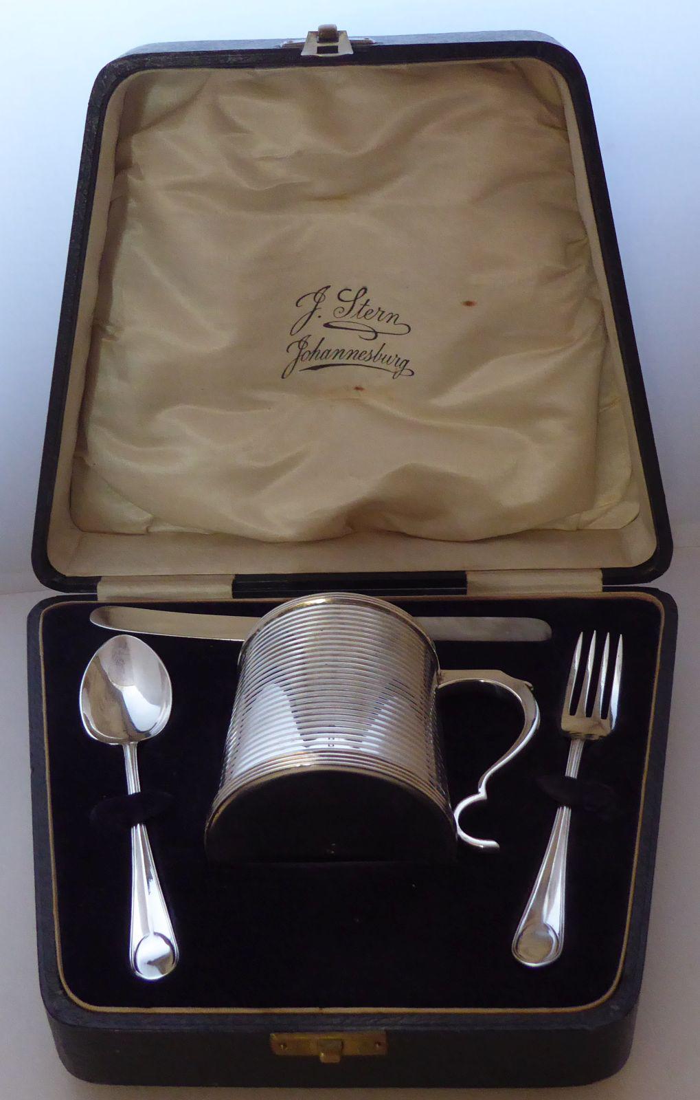 1917 Hallmarked Silver Christening Set Mug 1/2 Pint Tankard Knife Fork Spoon