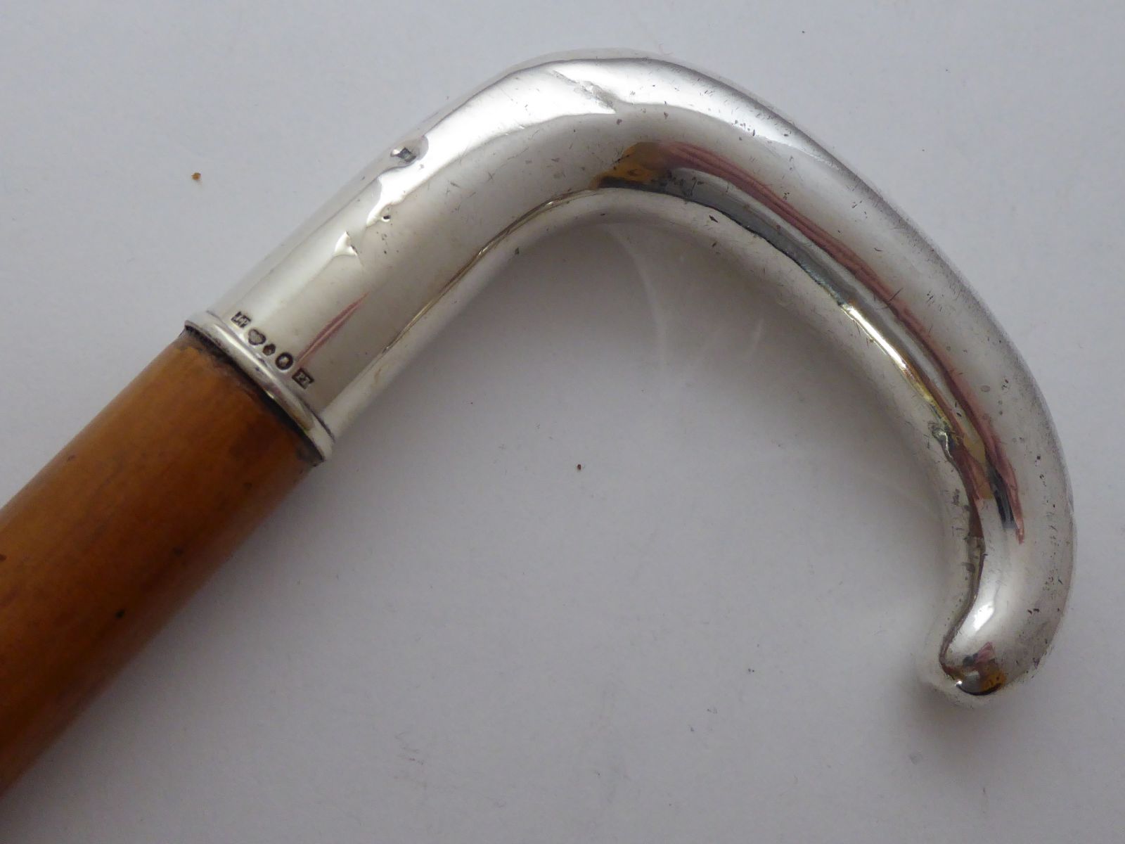 1917 Swedish Walking Stick Cane Solid Silver Handle Malacca Wood Shaft