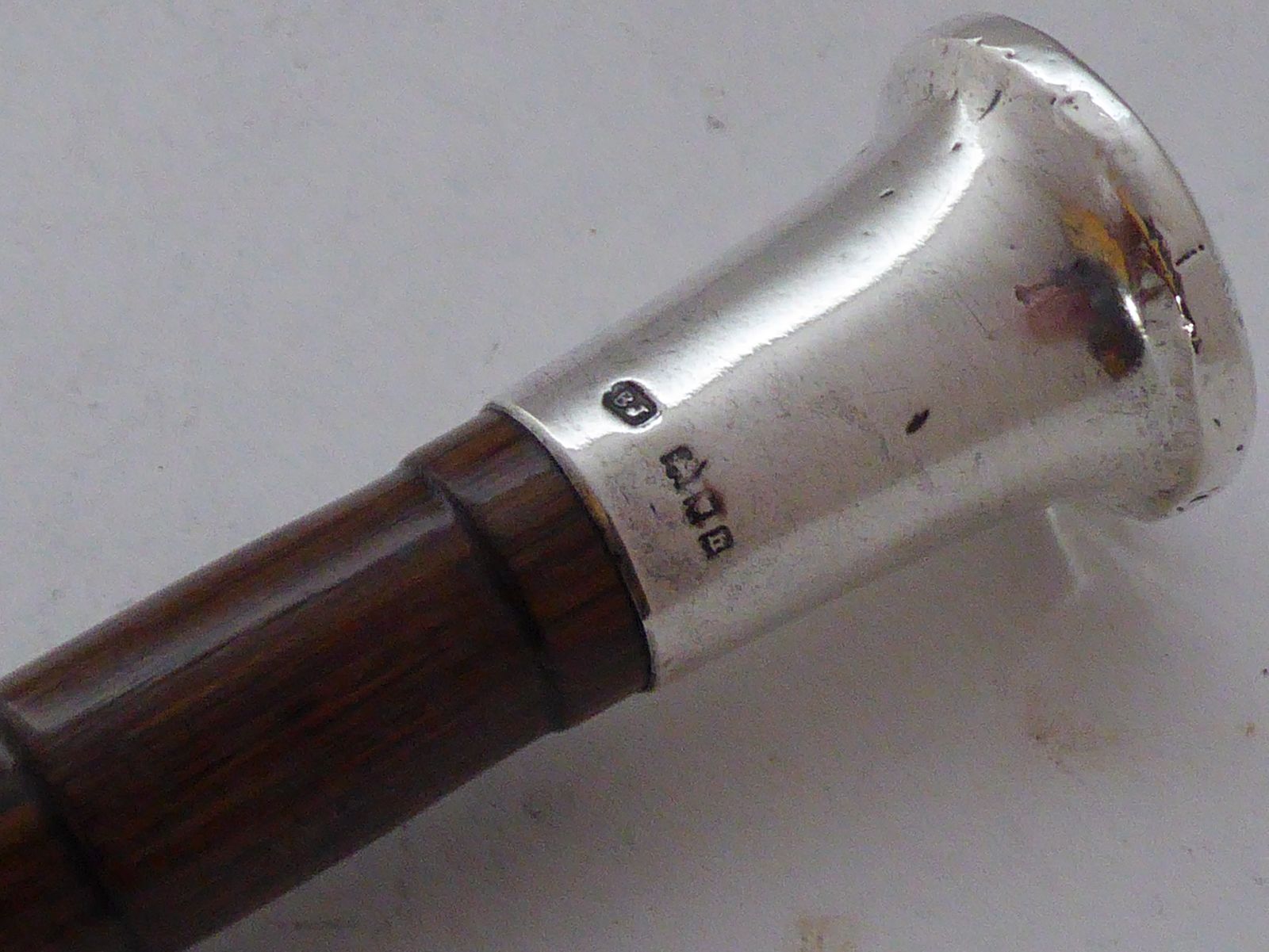 1917 Walking Stick Cane Hallmarked Solid Silver Pommel Partridge Wood Shaft
