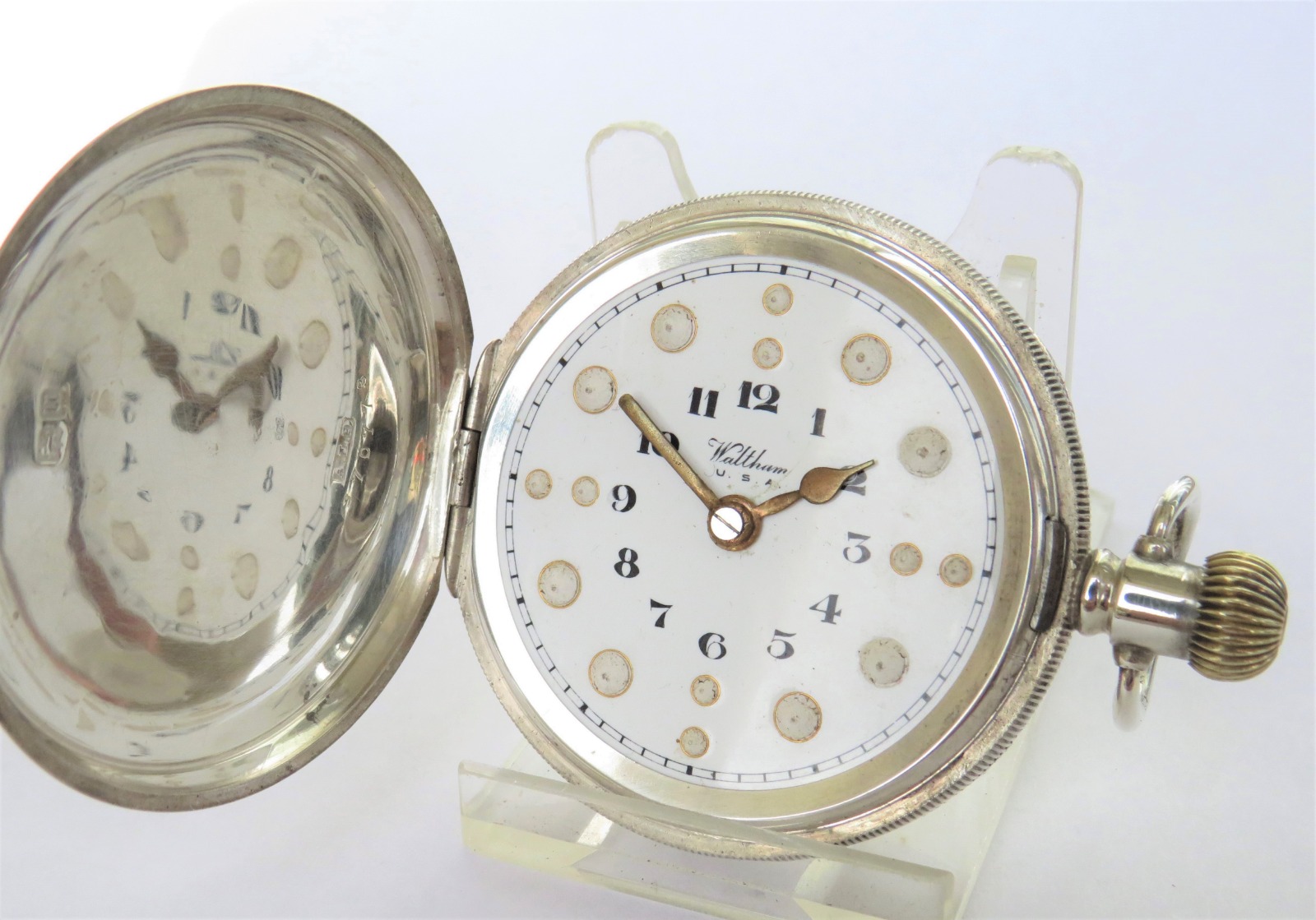 1917 Waltham Silver Hunter Braille Pocket Watch