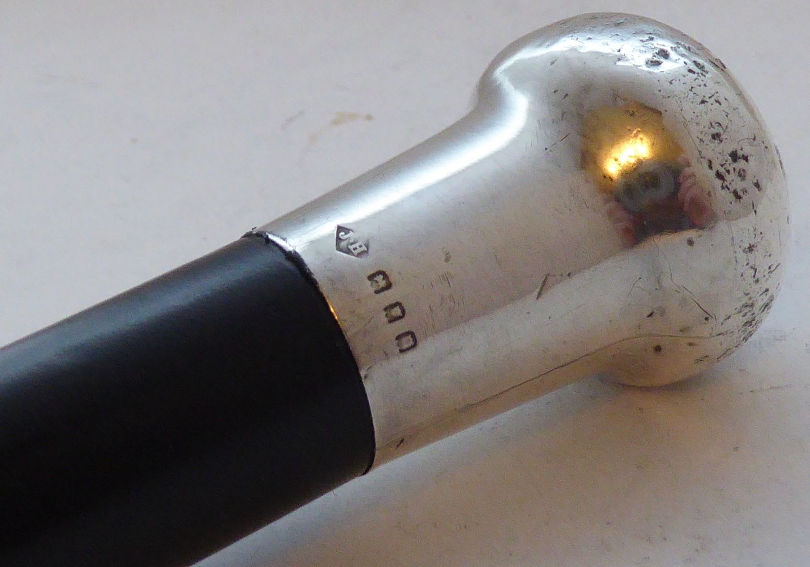 1918 Walking Stick Cane Hallmarked Solid Silver Pommel Ebonised Wood Shaft