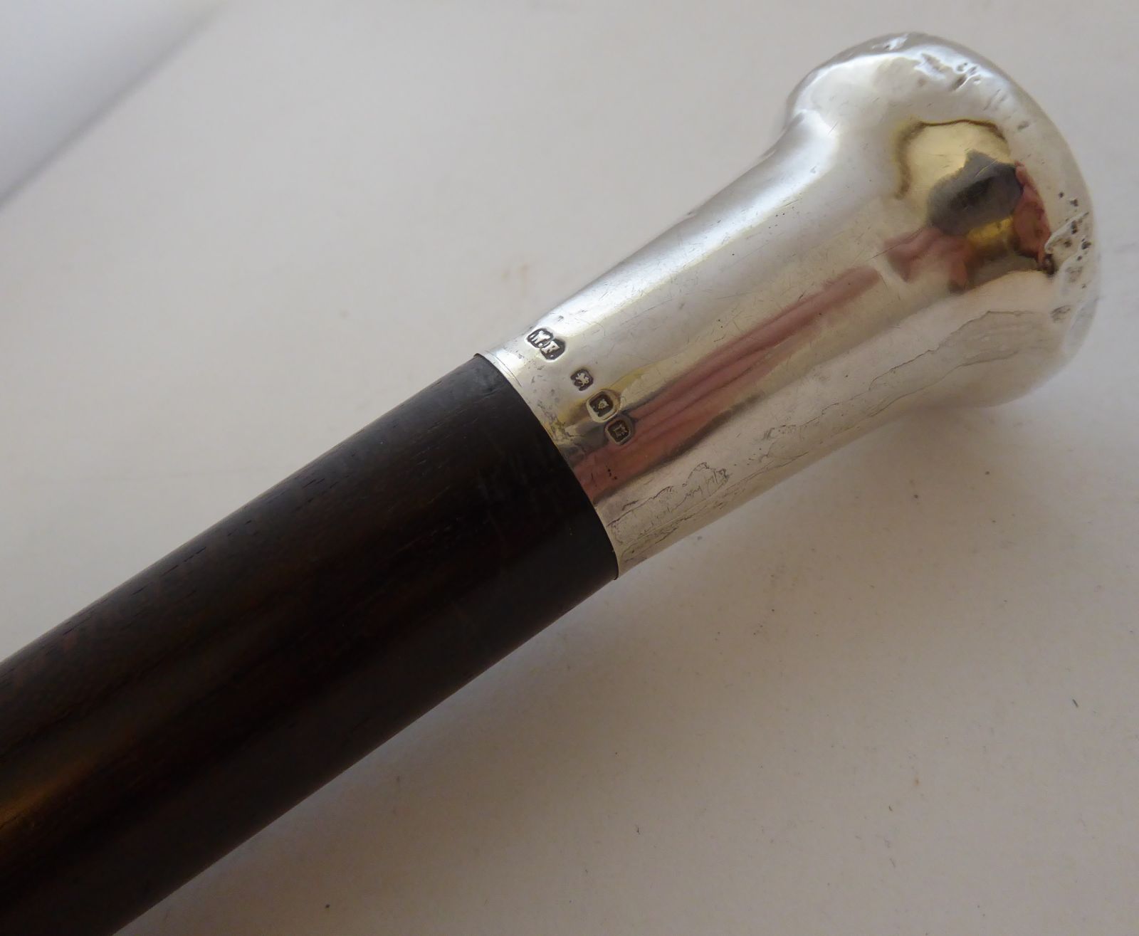 1918 Walking Stick Cane Hallmarked Solid Silver Pommel Rosewood Shaft 36" Long