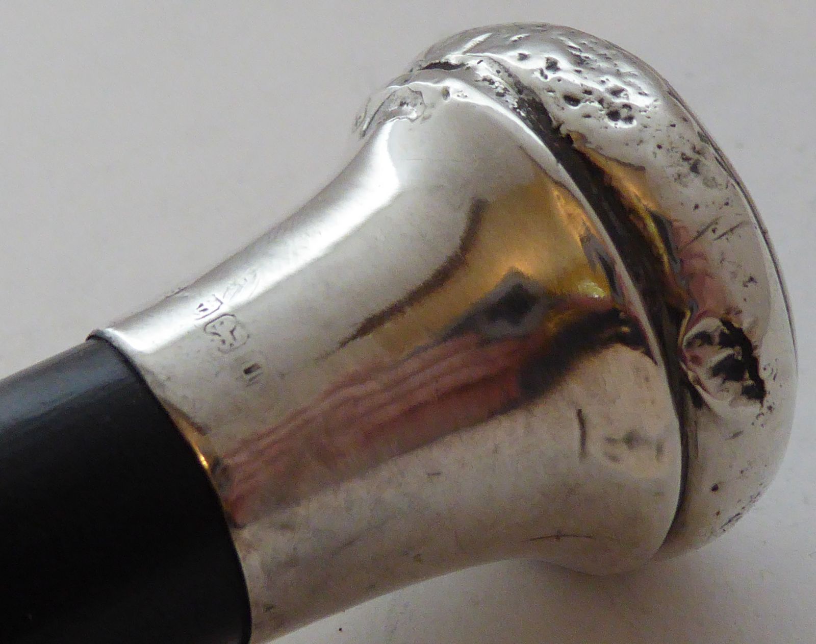 1919 Walking Stick Cane Hallmarked Solid Silver Pommel Ebonised Wood Shaft 90cm