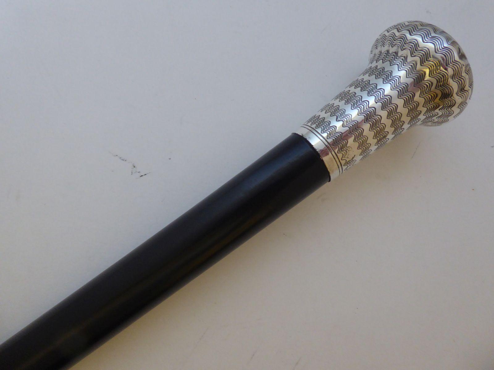 1919 Walking Stick Cane Hallmarked Solid Silver Pommel Ebony Wood Shaft