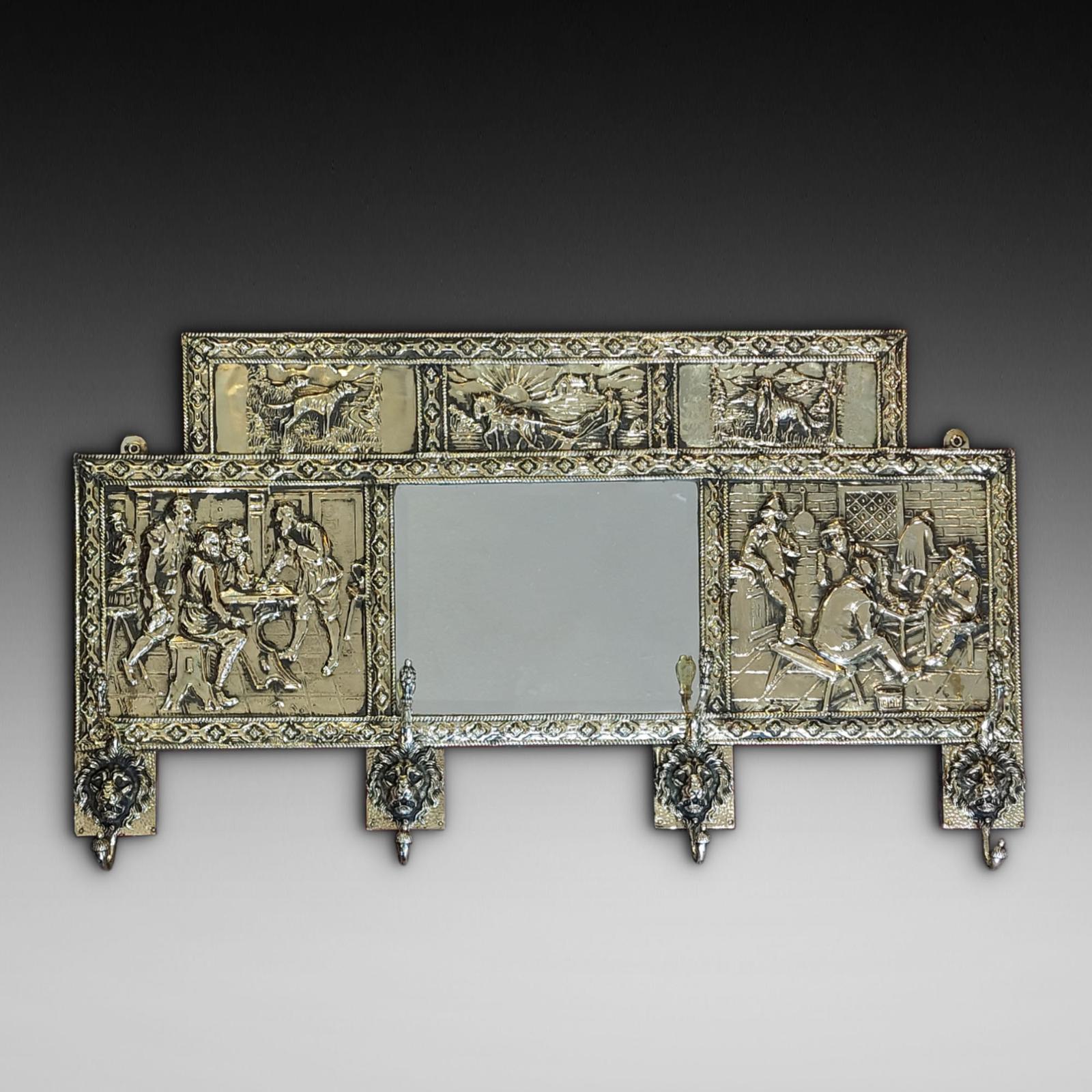 1920 / 1930s Decorative Brass & Mirrored Hat + Coat Rack (1 of 11)