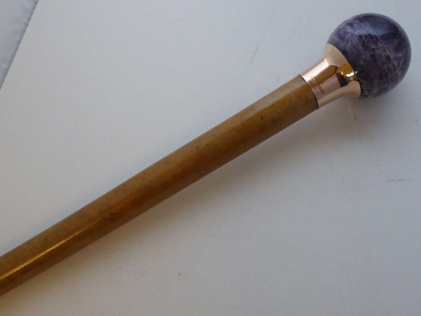 1920 Walking Stick Cane Hallmarked Solid 9ct Rose Gold Amethyst Pommel Malacca Shaft