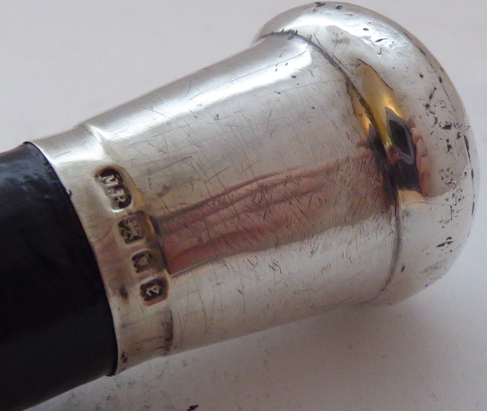 1920 Walking Stick Cane Hallmarked Solid Silver Pommel Ebonised Wood Shaft