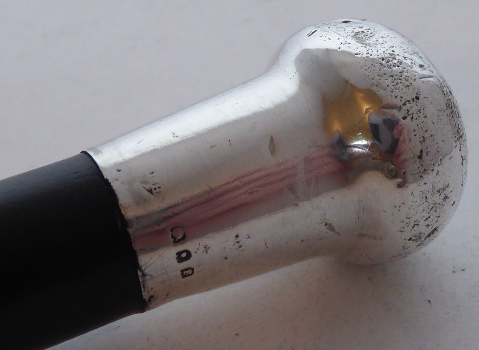 1920 Walking Stick Cane Hallmarked Solid Silver Pommel Ebonised Wood Shaft