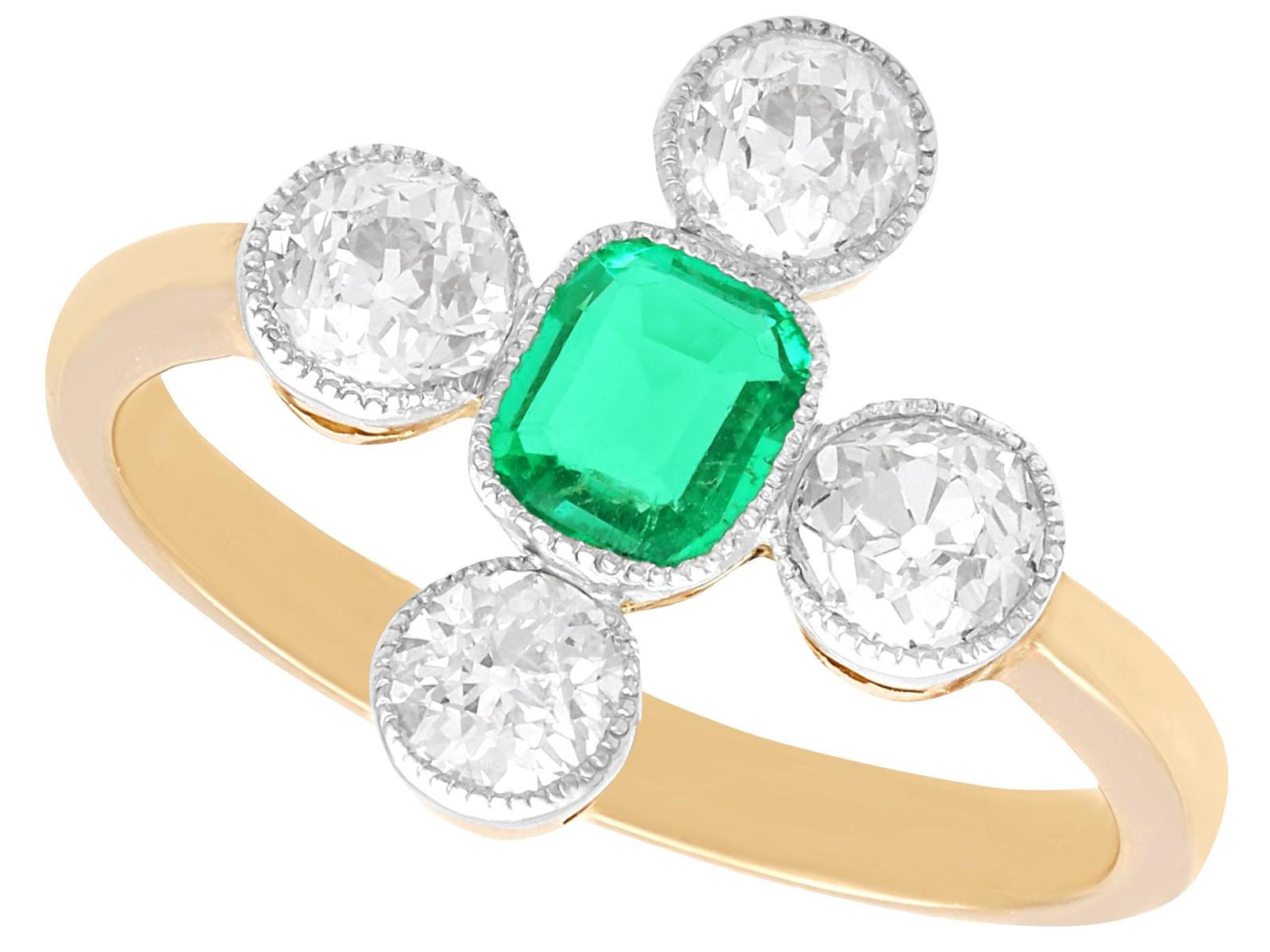 1920s 0.42ct Emerald & 1.20ct Diamond 12ct Yellow Gold Dress Ring (1 of 9)