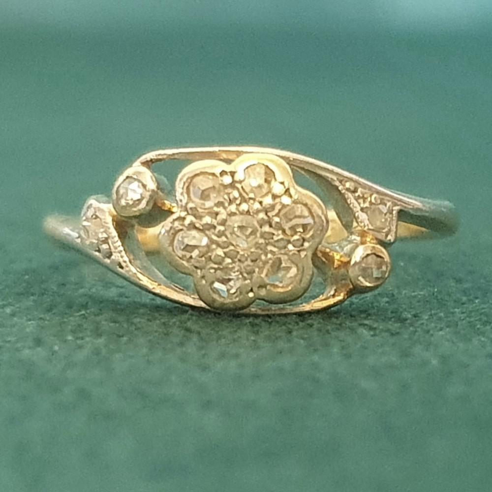 1920s-1930s Art Deco Old European Cut Diamonds Daisy Ring on Platinum & 18ct Gold
